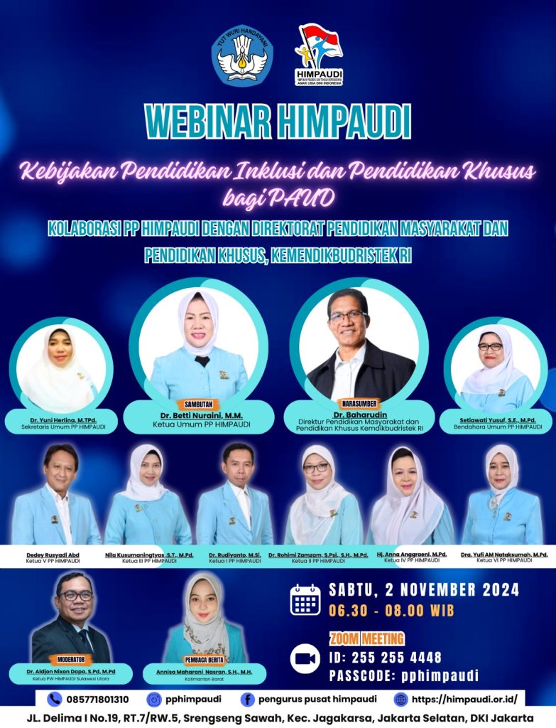 TALKSHOW HIMPAUDI dengan tema Kemitraan Pembelajaran dalam Kerangka Pembelajaran Mendalam dan subtema Kunci Keberhasilan PAUD: Strategi Kemitraan Pembelajaran”, pada: